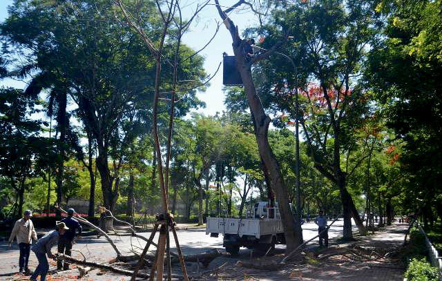 Ở công viên dọc hai bờ sông Hương, nơi có khá nhiều cây phượng vỹ đang ra hoa sẽ ưu tiên sau, do mức độ ảnh hưởng không lớn, nếu xảy ra sự cố đổ cây như vừa qua.