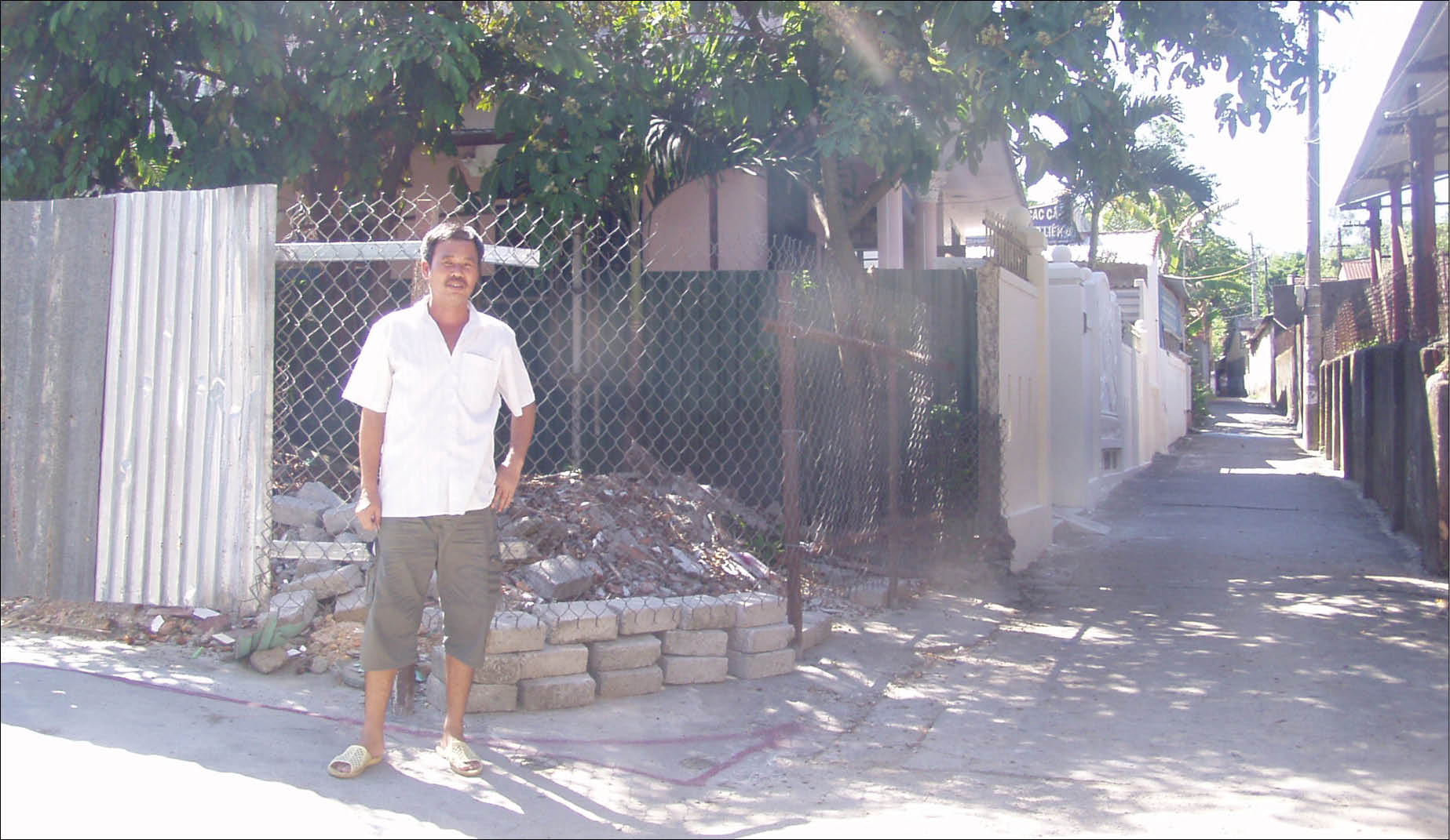Ông Trần Đình Tượng, trú tại khu tập thể kiệt 66 Ngự Bình cho biết, 6 hộ gia đình (thuộc dãy với nhà ông Quang) và nhiều hộ xung quanh đều thuộc Xí nghiệp Vật tư xây dựng 879. Từ trước đến nay, khu tập thể có 1 khoảnh đất chung để sinh hoạt và để các cháu nhỏ vui chơi. Vào khoảng năm 2000, ông Quang tiến hành xây dựng nhà, rồi làm hàng rào lấn chiếm luôn khoảnh đất chung. Giám đốc Xí nghiệp lúc bấy giờ là ông Hoàng Tùng Vượng đã buộc ông Quang tháo dỡ tường rào. Năm 2005, xí nghiệp cấp vật tư để khu tập thể làm lại sân chung này. Nay, không hiểu vì lý do gì, ông Quang lại tiếp tục rào lại khoảnh sân đó.
