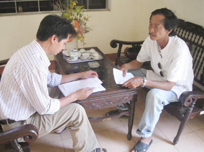 Ông Nguyễn Ngọc Sáu, bảo vệ Công ty Liên Bằng trao đổi với phóng viên Báo Thừa Thiên Huế