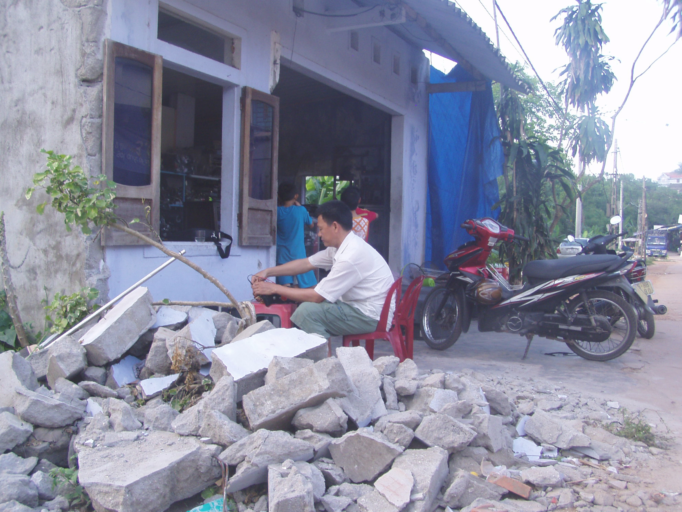 Ông Thạnh đã tháo dỡ một phần mái hiên và phòng may ở phía trước
