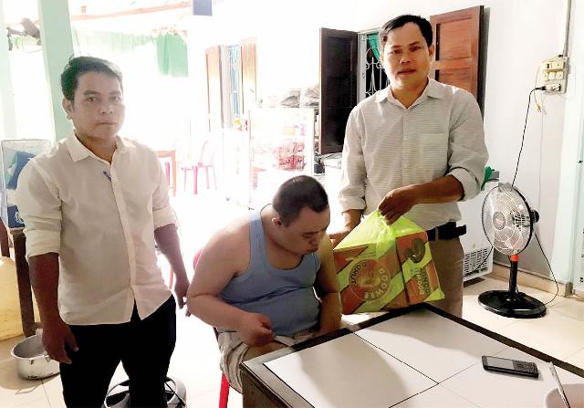 Lãnh đạo xã Hồng Hạ thăm, tặng quà cho nạn nhân chất độc da cam trên địa bàn (Ảnh chụp trước thời điểm bùng phát dịch COVID-19)