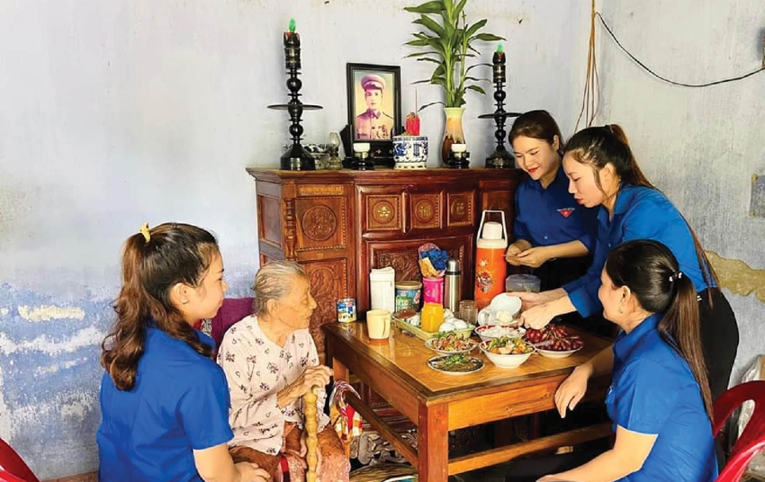 Đến thăm nhà bà Hý đúng lúc đoàn viên thanh niên địa phương đang tổ chức hoạt động chăm lo đời sống cho người có công ở địa phương. Hoạt động này mang tên “Bữa ăn có thịt”, do đoàn viên thanh niên tự trích kinh phí và mua sắm thực phẩm đến tận nhà nấu bữa ăn cùng với bà. Anh Lê Đình Minh "bật mí": Tùy vào điều kiện, hoạt động này được Đoàn phường duy trì hàng háng hoặc hàng quý, nhằm thể hiện trách nhiệm của tuổi trẻ đối với công tác đền ơn đáp nghĩa.