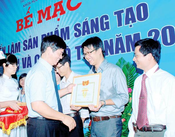Phan Tuấn Anh nhận bằng khen trong một cuộc thi của ĐH Huế