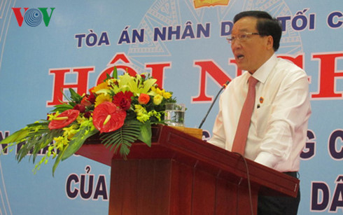 Chánh án TANDTC Nguyễn Hòa Bình yêu cầu Tòa án các cấp đẩy mạnh công tác cải cách tư pháp, không để xảy ra xét oan hoặc bỏ lọt tội phạm.