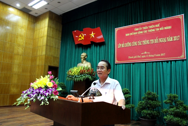 HNN.VN - Tình hình thời sự và công tác đối ngoại của lãnh đạo Đảng, Nhà nước thời gian gần đây; biển Đông và những tác động an ninh, trật tự, an toàn trên biển; các chủ trương, chính sách mới của tỉnh để thu hút đầu tư... là những nội dung được truyền đạt tại lớp bồi dưỡng công tác thông tin đối ngoại năm 2017 do Ban Chỉ đạo công tác Thông tin đối ngoại tỉnh tổ chức sáng 11/9.