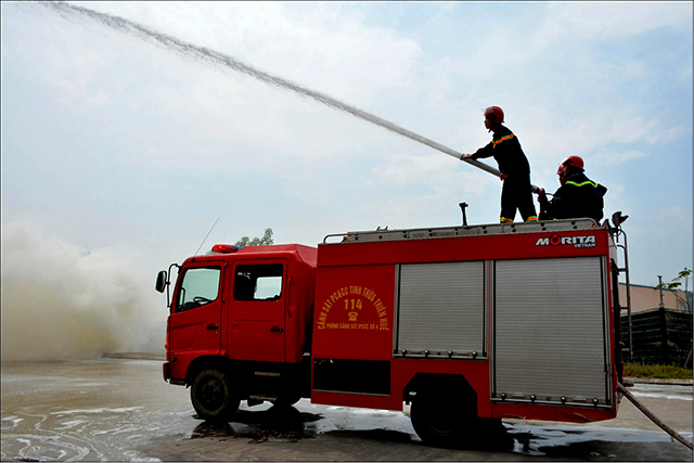 Ông Nguyễn Quốc Tuấn, Cụm trưởng Cụm doanh nghiệp an toàn, hỗ trợ PCCC và CNCH số 1 KCN Phú Bài cho biết: “Tình huống giả định trên là bài học kinh nghiệm để lực lượng tại chỗ chủ động, linh hoạt hơn trong công tác PCCC và CNCH. Hiện ở KCN Phú Bài đã thành lập được 4 cụm doanh nghiệp an toàn, hỗ trợ PCCC và CNCH. Mỗi cụm có từ 6 đến 9 doanh nghiệp thành viên cùng tương đồng về đặc điểm, tình hình liên quan đến sản xuất kinh doanh, vị trí địa lý và yêu cầu đảm bảo an toàn PCCC. Ngoài nhiệm vụ vận động, khuyến khích các thành viên trong cụm thực hiện nghiêm túc, đầy đủ các quy định của pháp luật và PCCC, duy trì điều kiện an toàn PCCC, cụm còn chia sẻ những kinh nghiệm trong quản lý, sắp xếp hàng hóa, tổ chức sản xuất hiệu quả, an toàn. Cụm còn tổ chức kiểm tra chéo lẫn nhau, nhằm nâng cao hiệu quả an toàn về PCCC và CNCH; kịp thời hỗ trợ nhau theo phương châm “4 tại chỗ” khi có sự cố cháy, nổ xảy ra”.