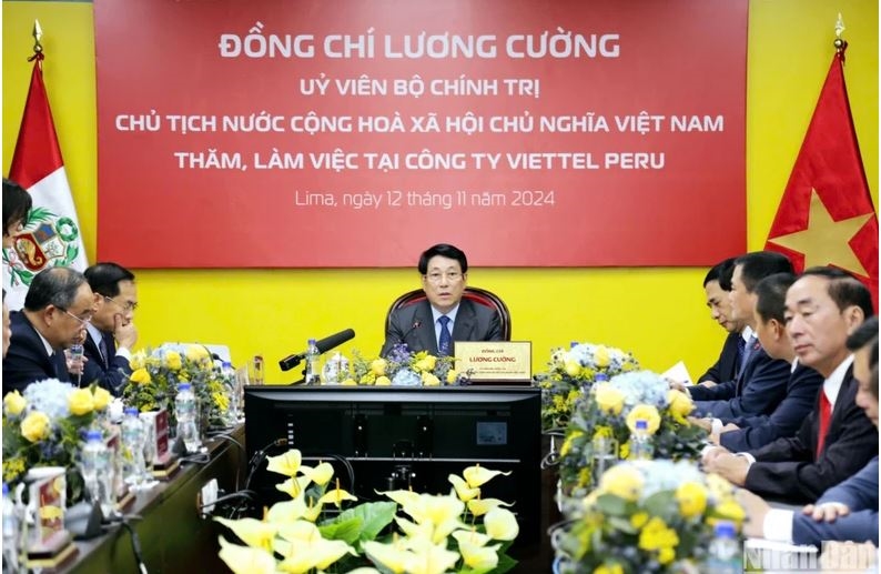 Phát biểu tại buổi làm việc, Chủ tịch nước bày tỏ vui mừng và xúc động khi được gặp mặt với cán bộ, nhân viên, người lao động của Viettel tại Peru với tư cách nhà mạng viễn thông mang tên Bitel, đang làm việc, kinh doanh tại một đất nước cách xa Tổ quốc nửa vòng trái đất.