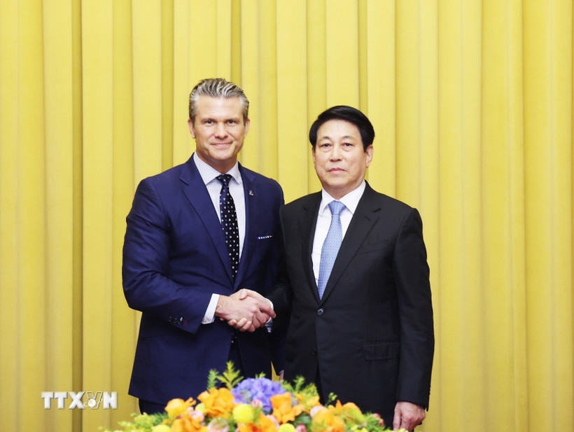 | Chủ tịch nước Lương Cường tiếp Bộ trưởng Bộ Chiến tranh Hoa Kỳ Pete Hegseth. (Ảnh: Lâm Khánh/TTXVN) |