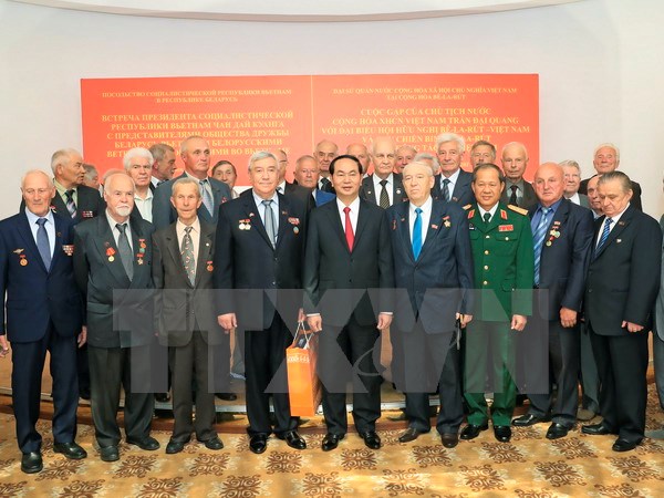 Chiều 26/6 theo giờ địa phương (tối cùng ngày theo giờ Hà Nội), ngay sau khi đến thủ đô Minsk, Chủ tịch nước Trần Đại Quang đã có buổi gặp mặt thân mật với các đại biểu Hội hữu nghị Belarus-Việt Nam và cựu chiến binh Belarus đã từng chiến đấu tại Việt Nam.