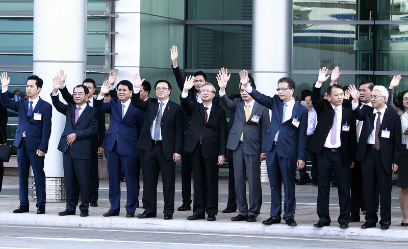 Tiễn Tổng Bí thư, Chủ tịch Trung Quốc Tập Cận Bình tại sân bay quốc tế Nội Bài có lãnh đạo cấp cao của Việt Nam và TP Hà Nội.