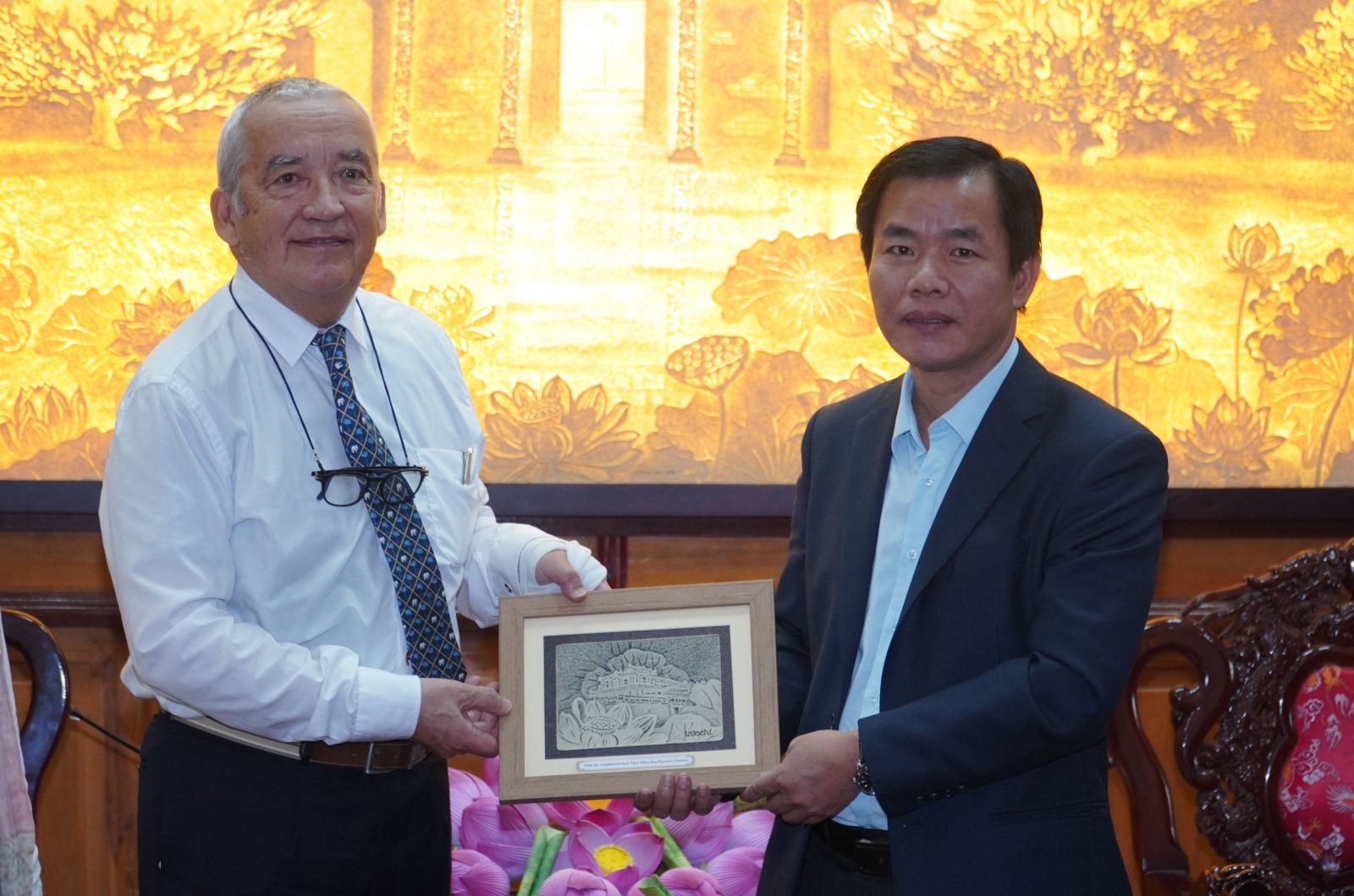 Chủ tịch UBND tỉnh tặng quà lưu niệm cho Giáo sư Hà Vĩnh Thọ