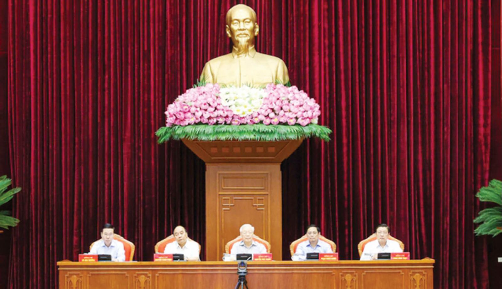 Tổng Bí thư Nguyễn Phú Trọng cùng các đồng chí Ủy viên Bộ Chính trị chủ trì Hội nghị tổng kết 10 năm phòng, chống tham nhũng. Ảnh: ubkttw.vn