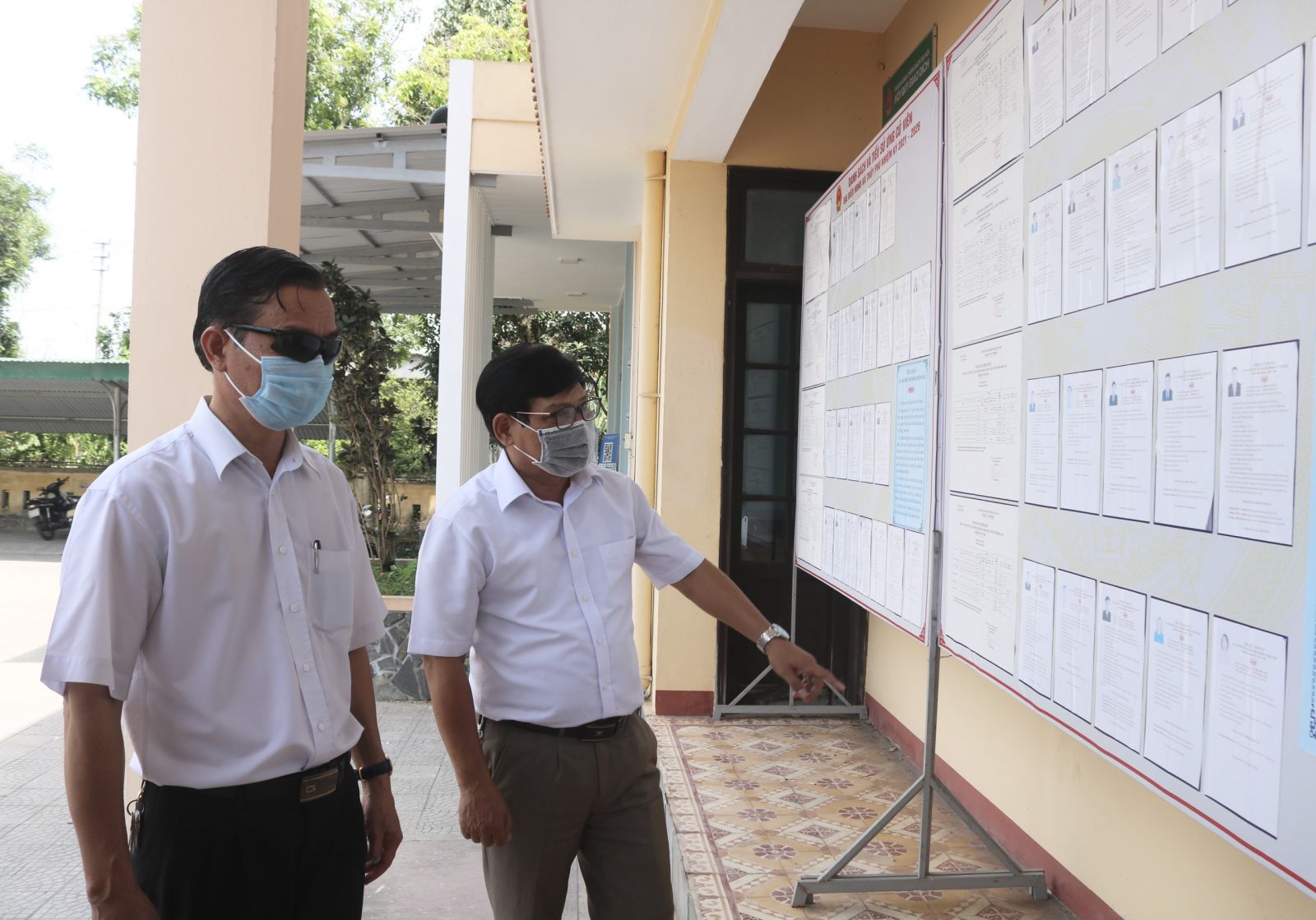 Ông Nguyễn Nam Tiến (bên phải) kiểm tra công tác bầu cử tại xã Thủy Phù