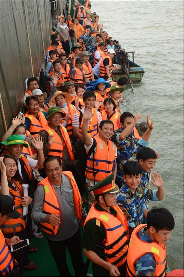 Đoàn phóng viên, đại biểu chuẩn bị xuống tàu, lên đảo