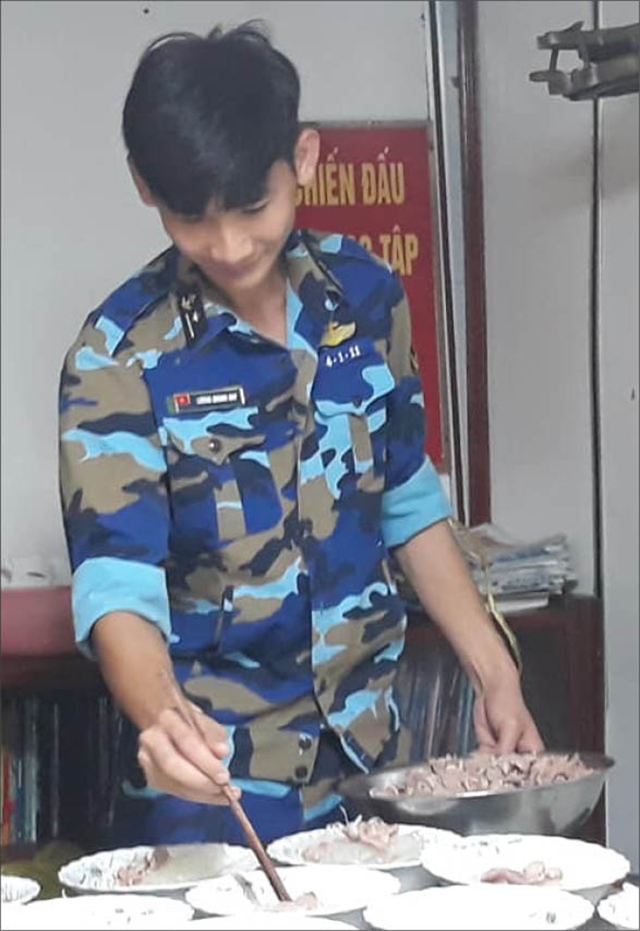 Những người lính biển can trường ấy suốt mấy hôm nay tự tay chăm sóc từng miếng ăn, giấc ngủ cho phóng viên, đại biểu đất liền. Bữa ăn nào cũng có thêm chén nước mắm ớt cay xè dành riêng cho người đến từ Huế, Quảng Bình. Chị em nào mệt, lúc sau đã có ngay bát cháo nóng hổi. Biết ai đó buổi tối ăn kém, khó ngủ, các anh đi chế bát mì tôm khuya “năn nỉ” ăn thêm... Mỗi ngày, trong khi chúng tôi lên đảo, các anh ở lại tàu “đánh vật” với công việc tỉ mẩn để phục vụ cho hơn 130 con người. Mỗi đêm, khi mọi người đã say giấc, các anh vẫn thay phiên canh gác, trực ở các vị trí, để con tàu lướt về phía trước. Cảm xúc dâng trào khiến tôi quên đi cơn “cảm” sóng. Từ căn bếp trên con tàu đang lắc lư bởi sóng lớn, trắng đêm hôm đó, tôi viết về những người lính biển can trường mà đầy ắp yêu thương.