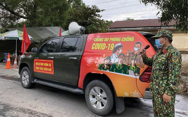 Chiếc xe dừng lại ở điểm chốt chặn phòng dịch ở thôn Hiền An 2, xã Vinh Hiền (huyện Phú Lộc). Giọng nói ấm áp của một nữ quân nhân vang lên từ loa phát thanh về thực hiện Chỉ thị 15, 16/CT - TTg, về tuân thủ 5K và các quy định phòng dịch...