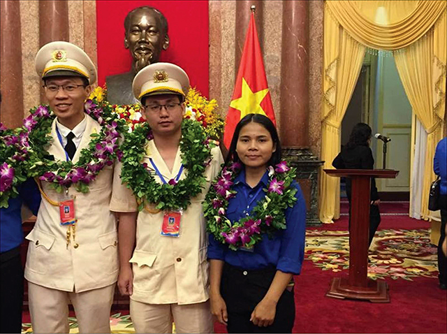 Viên Thị Hai (ngoài cùng bên phải) tại lễ nhận giải thưởng Lý Tự Trọng (Ảnh nhân vật cung cấp)