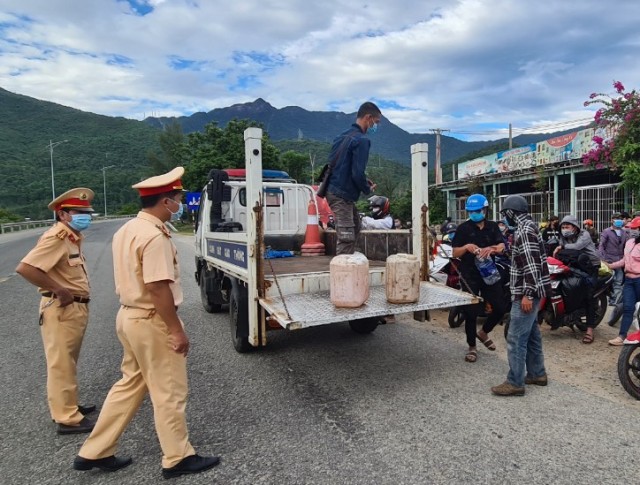 Được biết, trong sáng qua (25/7), lực lượng CSGT Công an tỉnh đã dẫn 79 xe với 121 người về quê đi qua địa bàn Thừa Thiên Huế. UBND huyện Phú Lộc và Trạm CSGT Phú Lộc cũng đã hỗ trợ nước suối, bánh mỳ cho đoàn xe về quê.