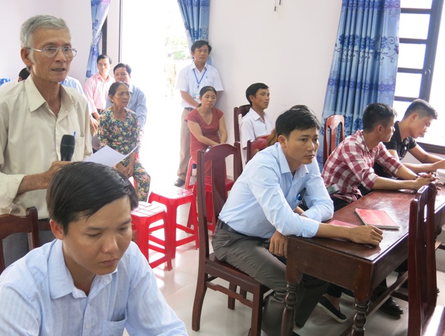 Cử tri Trần Văn Phẩm thôn Xuân Lộc (xã Phong Xuân) đề đạt ý kiến tại buổi tiếp xúc