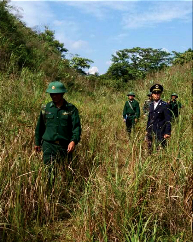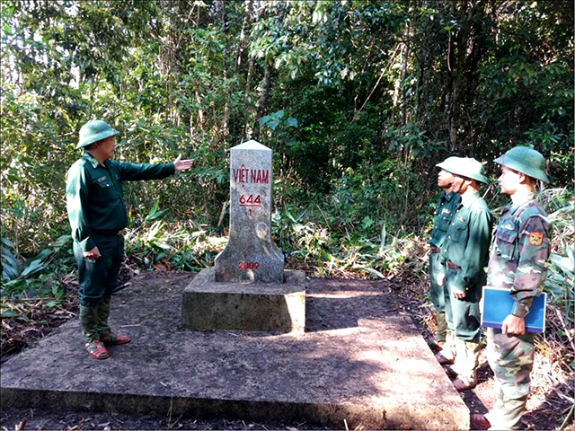 Bộ đội Biên phòng đồn Hồng Vân tuần tra cột mốc 644 giữa Việt Nam và nước bạn Lào
