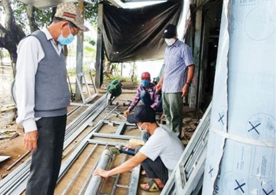 Ông Phẩm kiểm tra xưởng sản xuất nhôm kính của mình