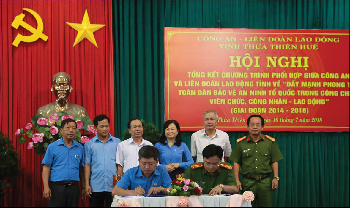 Trong 4 năm qua (2014 - 2018), Công an tỉnh phối hợp với Liên đoàn Lao động tỉnh tổ chức gần 2.300 buổi tuyên truyền chính sách, pháp luật của Nhà nước ở các cơ quan, đơn vị, doanh nghiệp với trên 87.000 lượt người tham dự; hơn 9.300 buổi tuyên truyền, phổ biến Luật Công đoàn, Luật Lao động, tập huấn kỹ năng phòng ngừa giải quyết tranh chấp lao động tập thể, phản ứng nhanh với các vụ việc bãi công có yếu tố chính trị cũng được tổ chức, lồng ghép tại các buổi tuyên truyền.