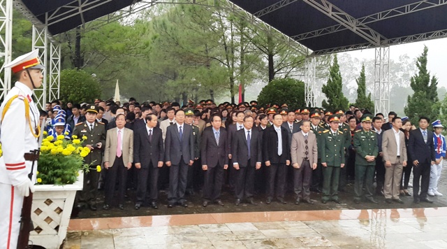 | Đoàn lãnh đạo tỉnh dâng hoa lên các anh hùng liệt sĩ |