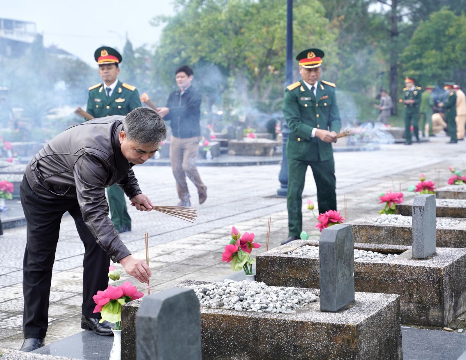 Bí thư Thị ủy Hương Thủy Lê Ngọc Sơn thắp hương tri ân những người đã hy sinh vì Tổ quốc