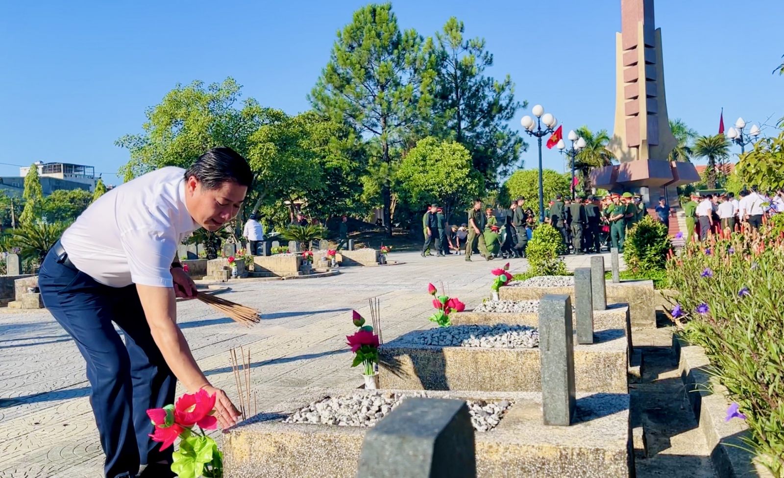 Trong không khí trang nghiêm, đoàn đại biểu đã thành kính đặt vòng hoa, dâng hương tưởng nhớ, bày tỏ lòng biết ơn sâu sắc trước công lao các Anh hùng liệt sĩ đã chiến đấu, hy sinh vì sự nghiệp cách mạng của Đảng, vì nền độc lập, tự do của Tổ quốc.