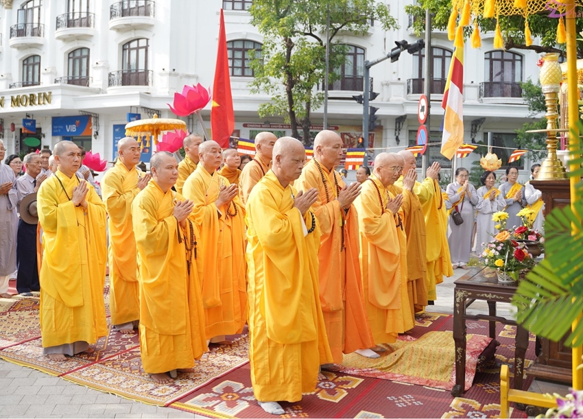 Tại Đài Thánh tử đạo, Chư Tôn thiền đức Tăng Ni Ban Trị sự GHPGVN tỉnh đã thành tâm dâng hương, đảnh lễ và đặt vòng hoa tưởng niệm chư anh linh Thánh tử đạo. Trong không khí trang nghiêm đầy ý nghĩa, toàn thể chư tôn thiền đức Tăng Ni đã nhiễu quanh Đài tưởng niệm, thành tâm cầu nguyện, hồi tưởng và tri ân chư anh linh Thánh tử đạo. Đài Tưởng niệm Thánh tử đạo là biểu tượng cho tinh thần kiên cường bất khuất của Phật giáo Huế trước thế lực bạo quyền, nơi đây 8 vị Phật tử đầu tiên đã nằm xuống trước xe tăng, thiết giáp, súng đạn vào tối Rằm tháng 4 năm Quý Mão (1963).