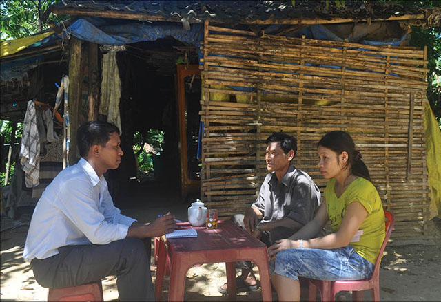 Bí thư Chi bộ thôn Mu Nú – Ta Rá Trần Văn Trai (bên trái) tìm hiểu, giúp gia đình chị Nguyễn Thị Mai, một hộ nghèo trong thôn phát triển kinh tế