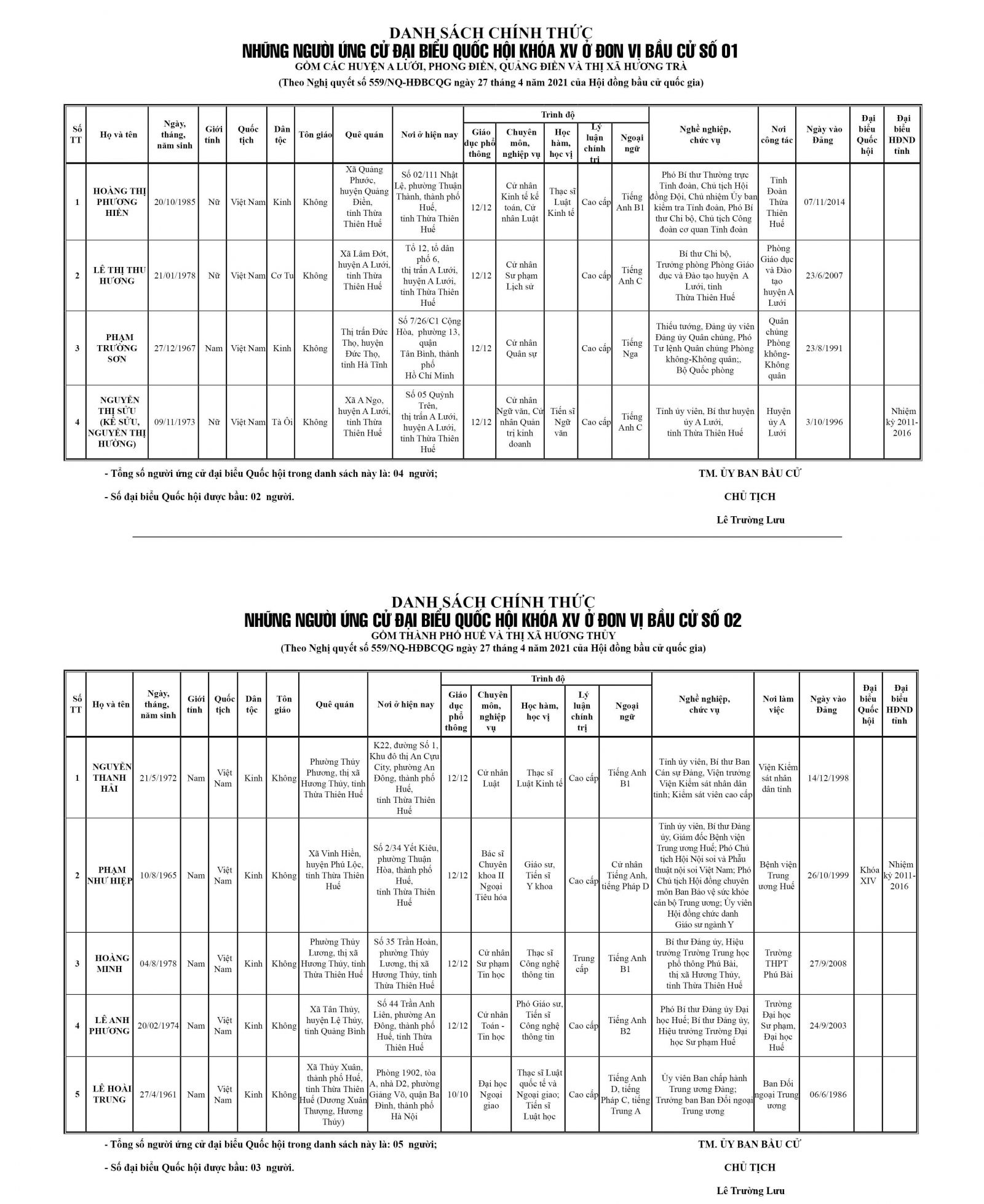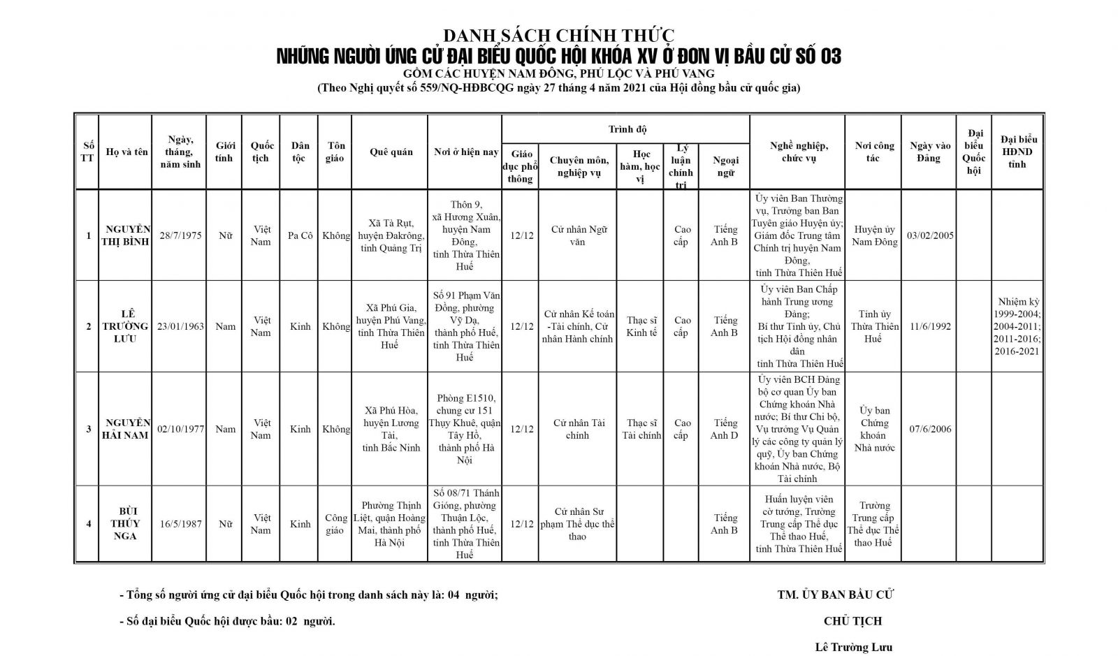 Danh sách chính thức những người ứng cử đại biểu Quốc hội khóa XV