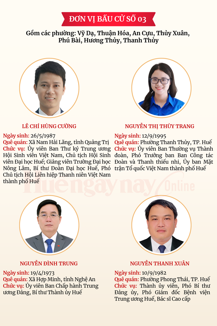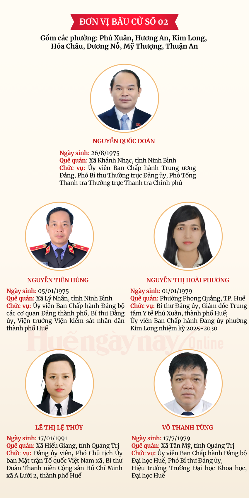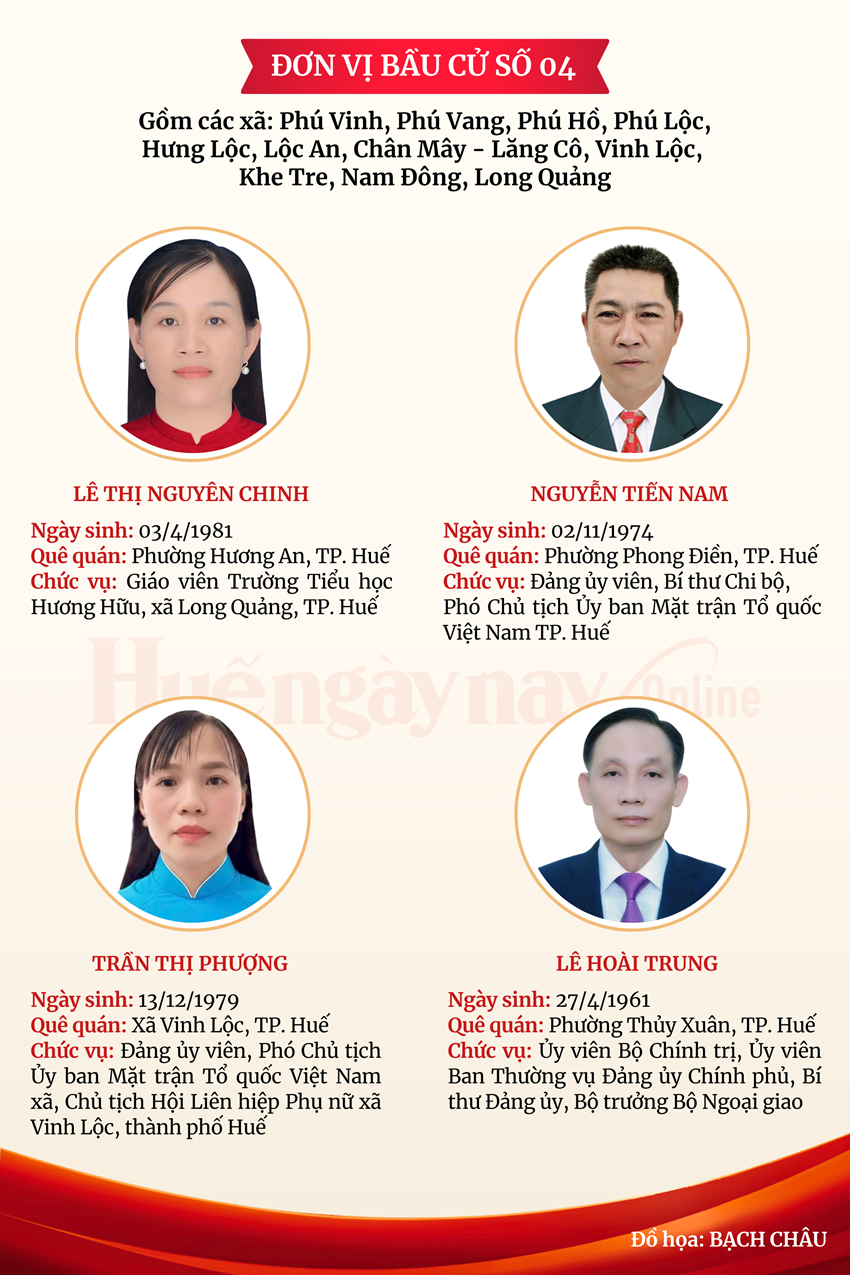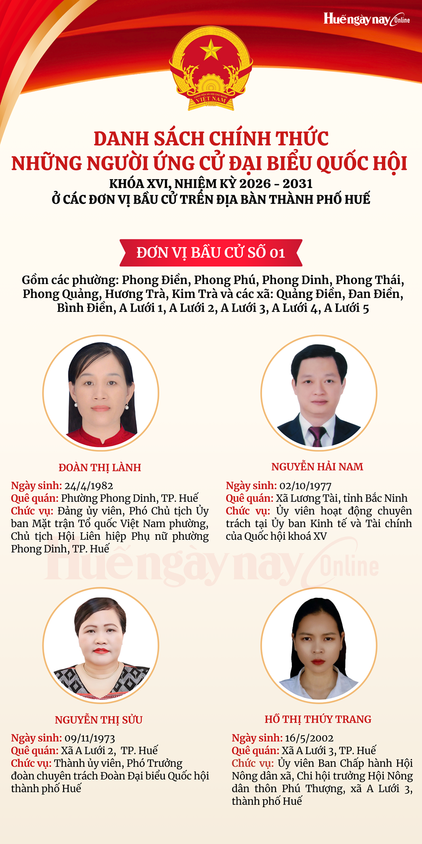 Danh sách chính thức những người ứng cử đại biểu Quốc hội, khóa XVI, nhiệm kỳ 2026 - 2031 ở các đơn vị bầu cử trên địa bàn thành phố Huế