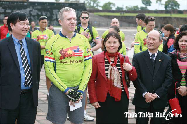 Lãnh đạo tỉnh và Liên hiệp các tổ chức hữu nghị tiếp Đại sứ Hoa Kỳ trong chuyến xe đạp xuyên Việt (ảnh tư liệu)