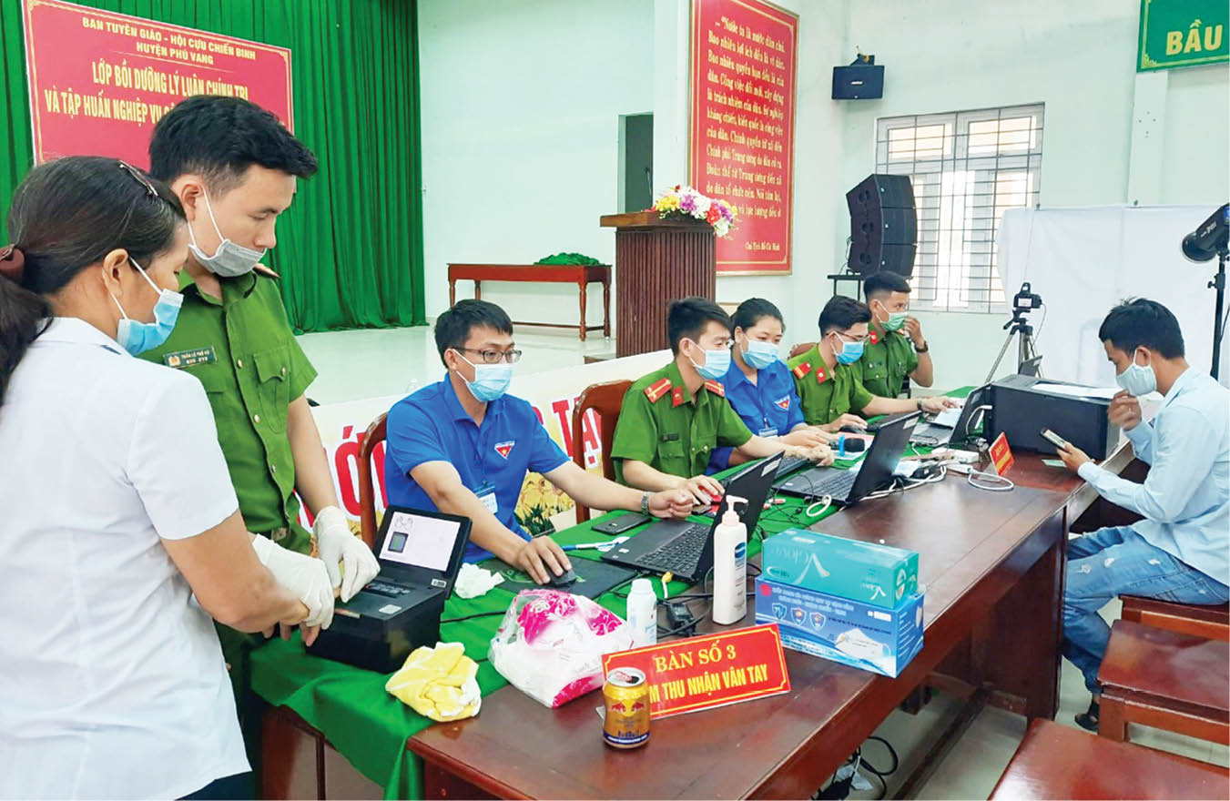 Cán bộ, chiến sĩ công an lăn tay để cấp đổi thẻ CCCD cho người dân (Ảnh chụp trước thời điểm bùng phát dịch COVID-19). Ảnh: MC