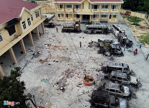 Hiện trường vụ người dân gây rối, đập phá tài sản, chống người thi hành công vụ tại Bình Thuận. (Ảnh: Zing)