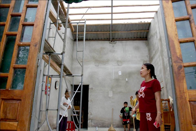 Một ngôi nhà bị ảnh hưởng do lốc đang được sửa chữa