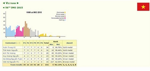 Bảng thành tích của đội tuyển Việt Nam tại kỳ thi Olympic Toán 2015