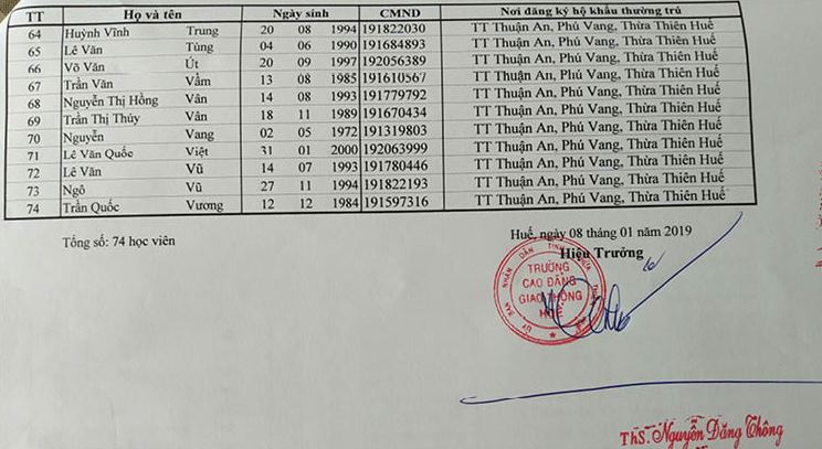 Danh sách học viên “chờ” cấp bằng lái ở Thuận An (Phú Vang)