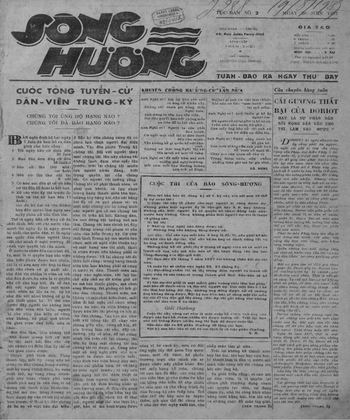 Xứ ủy Trung Kỳ và Tỉnh ủy Thừa Thiên chủ trương phải mua lại tờ Sông Hương để ra báo “hợp pháp” mà khỏi cần xin phép chính quyền. Thông qua ông Phan Thao, một nhà báo theo xu hướng cộng sản và là con trai của ông Phan Khôi giới thiệu, tờ Sông Hương được chuyển qua tay những người cộng sản với “năm mươi đồng”, thời giá do đồng chí Phan Đăng Lưu, Ủy viên Thường vụ Xứ ủy Trung Kỳ trực tiếp làm Chủ bút.