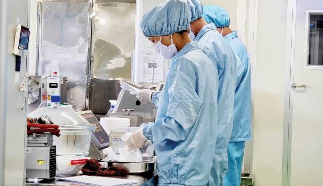 Nhân viên hóa nghiệm ở công ty Sinh dược phẩm Hera ở khu công nghiệp Tứ Hạ
