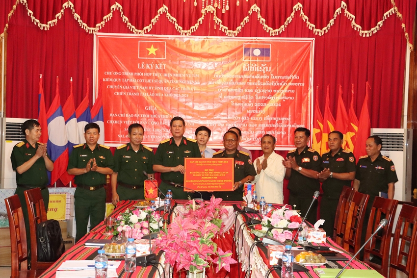 Cũng trong dịp này, Bộ Chỉ huy Quân sự tỉnh Thừa Thiên Huế trao tặng Bộ Chỉ huy Quân sự tỉnh Salaban – Lào 3 bộ máy vi tính, 1 tivi 55 inch và trao tặng Ban công tác đặc biệt tỉnh 30 triệu đồng.