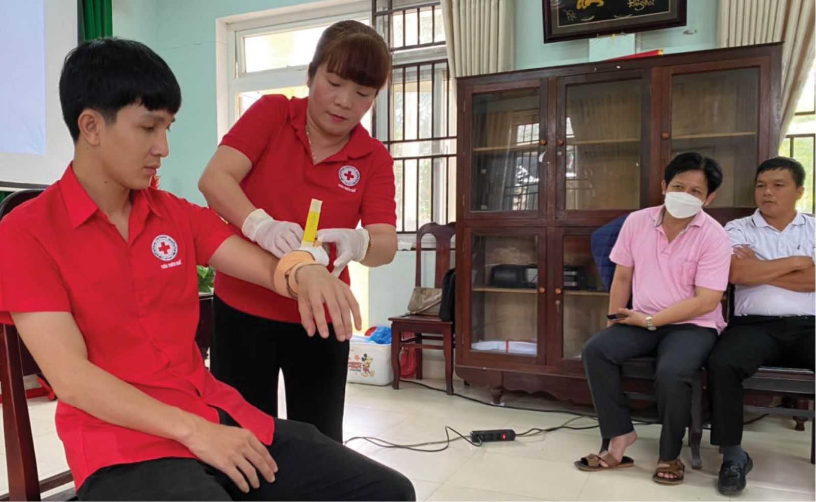 Tập huấn kỹ năng xử lý sơ cấp cứu cho giáo viên trường học. Ảnh: Hội Chữ thập đỏ Quảng Điền