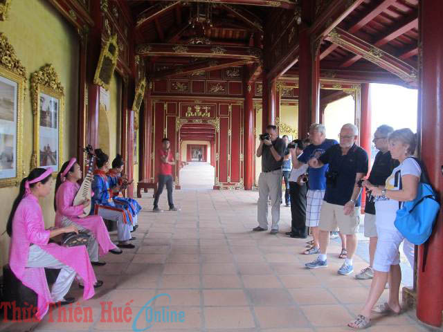 Biểu diễn âm nhạc cung đình phục vụ du khách ở Trường Lang (Đại Nội)
