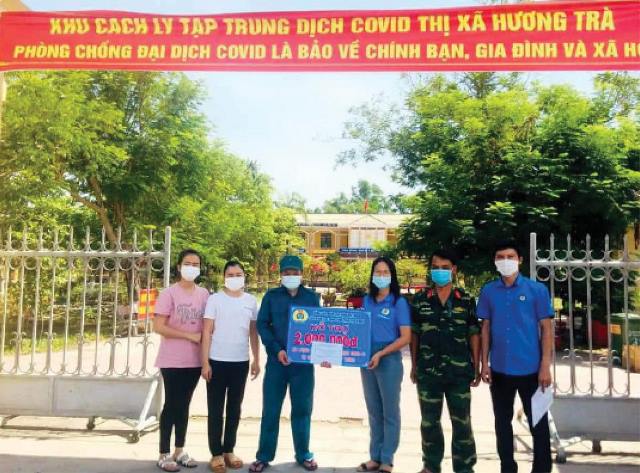 Đồng cảm, sẻ chia với khó khăn của người lao động trong bối cảnh đợt dịch thứ tư vẫn diễn biến phức tạp, kéo dài, từ đầu năm 2021 đến nay, LĐLĐ thị xã phối hợp với Mặt trận Tổ quốc và các đoàn thể Hương Trà vận động đoàn viên, người lao động ủng hộ Quỹ vắc-xin với số tiền hơn 160 triệu đồng; ủng hộ đồng bào miền Nam gần 100 triệu đồng và hơn 3 tấn gạo, rau, củ, quả. Trước đó, LĐLĐ cũng chủ động triển khai ủng hộ 1.500 hũ thức ăn chế biến sẵn cho công nhân, người lao động trong khu cách ly tỉnh Bắc Giang và Bắc Ninh. Ngoài ra, hơn 1.500 lượt chị em, đoàn viên, giáo viên tích cực tham gia nấu ăn tại các khu cách ly.