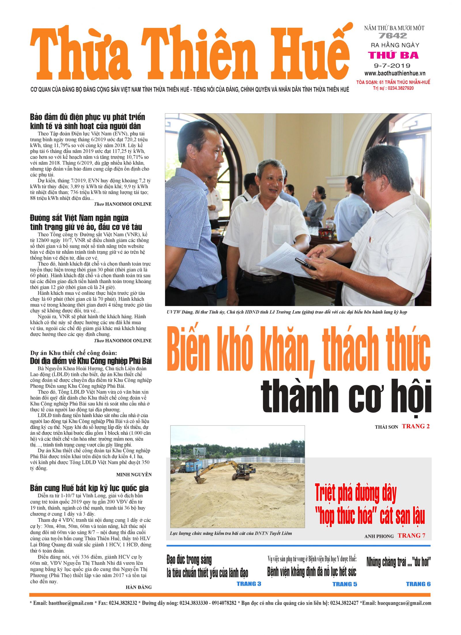 Trang nhất Báo Thừa Thiên Huế số 7642