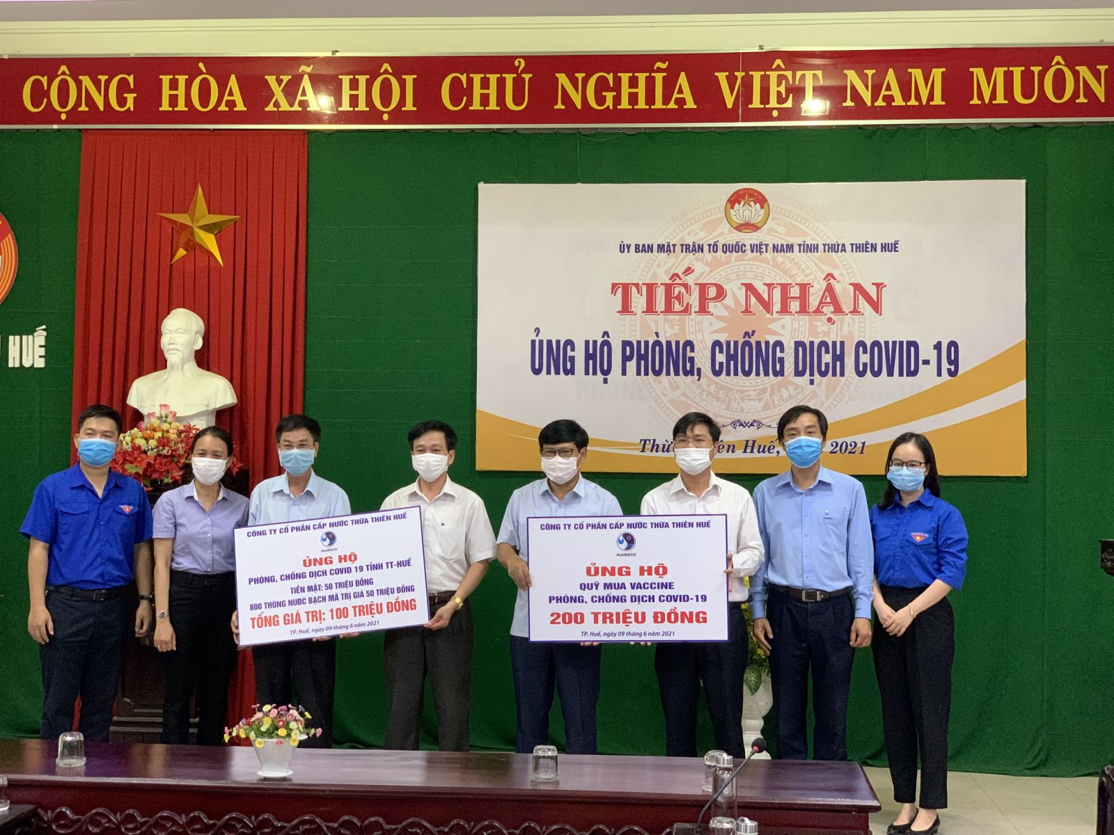Dịp này, Công ty cổ phần Cấp nước tỉnh ủng hộ quỹ 300 triệu đồng; trong đó, mua vaccine 200 triệu đồng, quỹ phòng chống dịch 50 triệu đồng và 800 thùng nước Bạch Mã (trị giá 50 triệu đồng). Công ty Bảo hiểm PVI Huế ủng hộ 20 triệu đồng mua vaccine. Công ty cổ phần Dệt may Huế ủng hộ 50 triệu đồng cho công tác phòng, chống dịch.