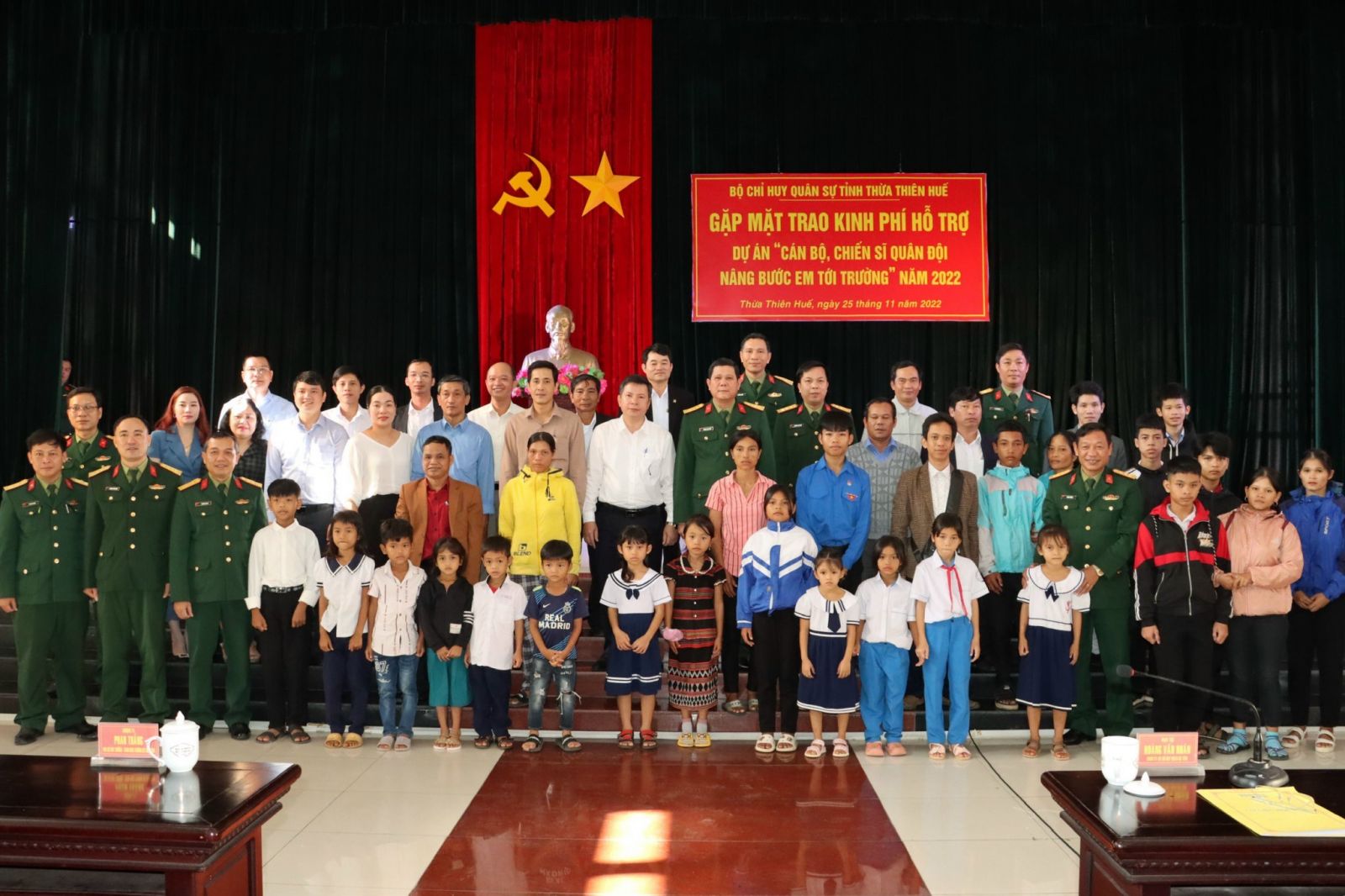 Không những trợ cấp tiền hàng tháng, Ban CHQS huyện A Lưới, Nam Đông, Phú Lộc, thị xã Hương Trà, nơi có gia đình các em học sinh được nhận nuôi, giúp đỡ sẽ thường xuyên phối hợp chặt chẽ với gia đình, nhà trường và địa phương nắm chắc tình hình kết quả học tập, rèn luyện, đời sống của các em trong suốt giai đoạn hỗ trợ để kịp thời động viên, giúp đỡ.
