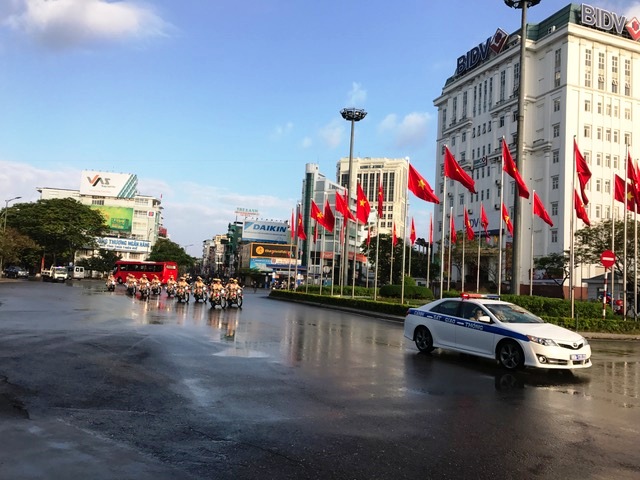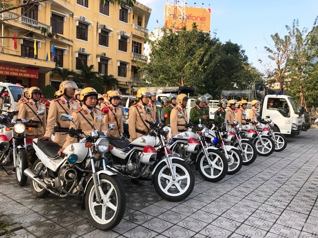 HNN.VN - Sáng 28/1 (mùng 1 Tết), các phòng nghiệp vụ thuộc Công an tỉnh gồm: Phòng Cảnh sát Cơ động - Trật tự, Phòng Cảnh sát Giao thông, Phòng Cảnh sát Quản lý Hành chính về trật tự xã hội, cùng Công an TP. Huế và công an các địa phương đồng loạt ra quân đảm bảo ANTT Tết Nguyên đán Đinh Dậu.