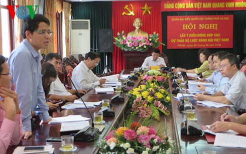 Chuẩn bị cho kỳ họp thứ 10, Quốc hội khóa XIII, sáng 8/10, Đoàn Đại biểu Quốc hội thành phố Hà Nội tổ chức hội nghị lấy ý kiến đóng góp vào dự thảo Bộ Luật Hàng hải Việt Nam. Nội dung bảo hộ vận tải nội địa và nội dung 3 ngành nghề kinh doanh có điều kiện trong dự thảo bộ luật được nhiều đại biểu tham gia góp ý.